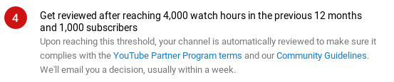 As you can see, YouTube firstly values watch hours and number of subscribers in order to allow you to enter to YouTube Partner Program which means that you can monetize your channel.